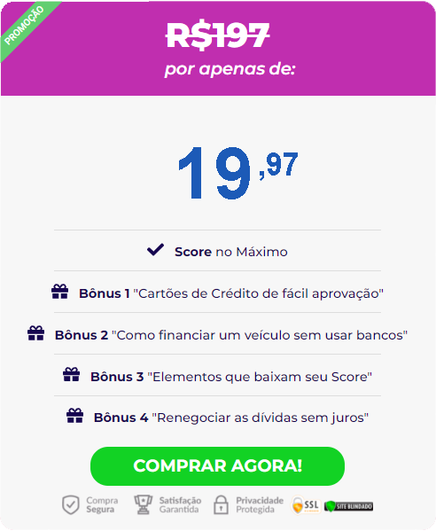 Esse é o único guia que consegue sair de um Score de risco para um Score Confiável e obter o crédito que precisa no mercado, aprovando cartão de crédito, financiando um imóvel, carro ou outro bem que você tanto sonha. Também mostra exatamente o que fazer para nunca mais ter seu crédito negado, aprenda aumentar seu score rapido aqui.